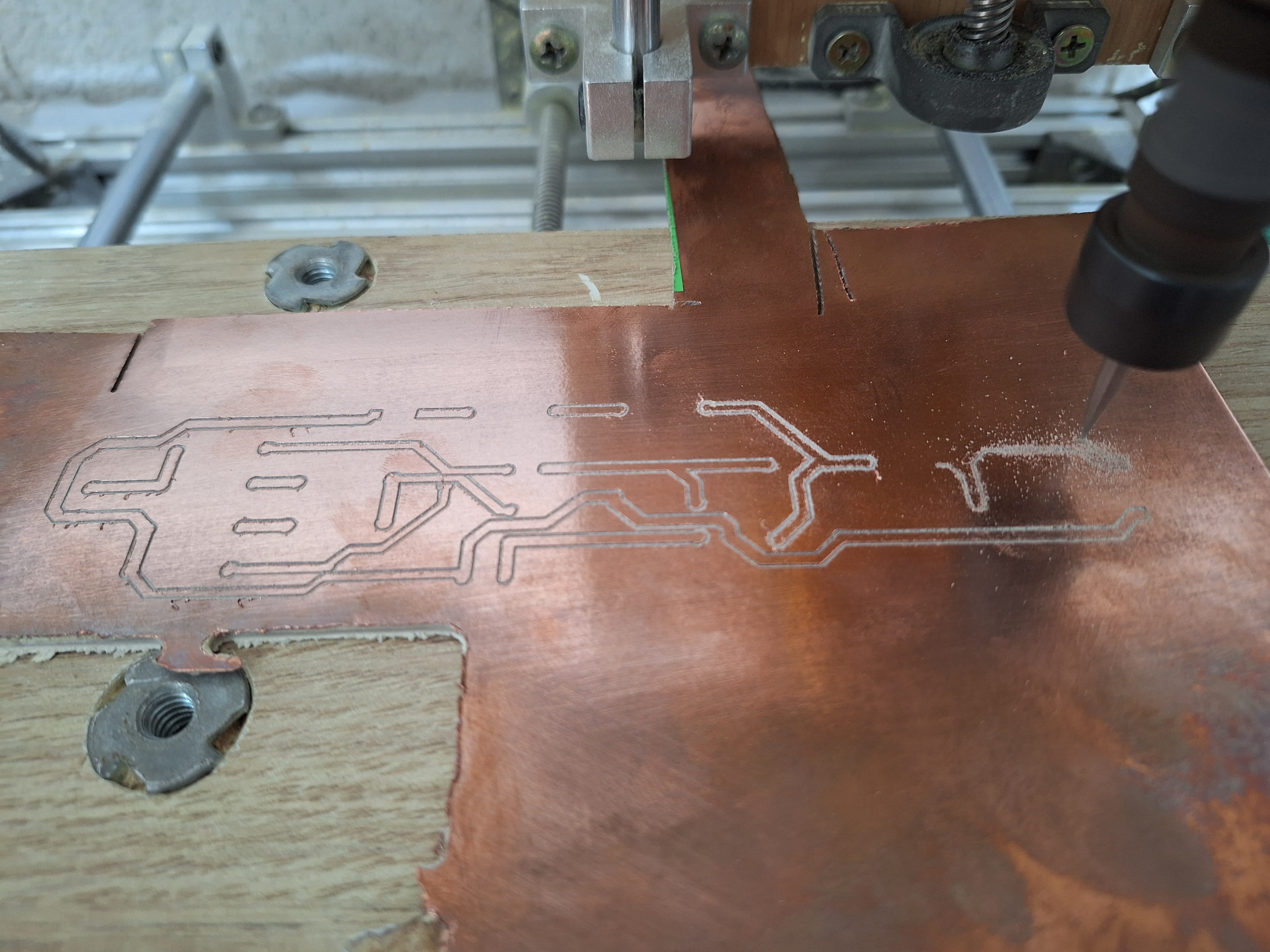 Com o circuito funcional testado na protoboard, a próxima etapa foi a produção de um circuito impresso (PCB) utilizando uma mini fresadora. Este processo envolveu várias etapas detalhadas: