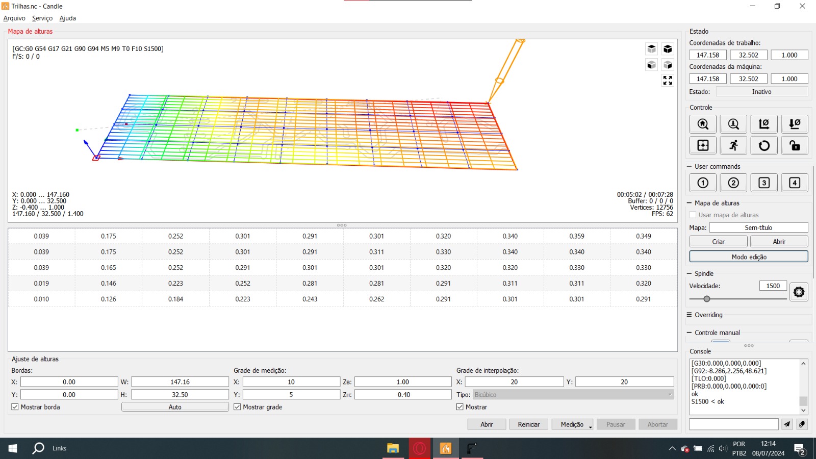 Realizei uma medição de desnível da placa (mapa de altura) dentro do Candle, para garantir que a qualidade das trilhas não fosse prejudicada devido ao desnível da placa. Utilizamos o mesmo mapa de altura para os furos.